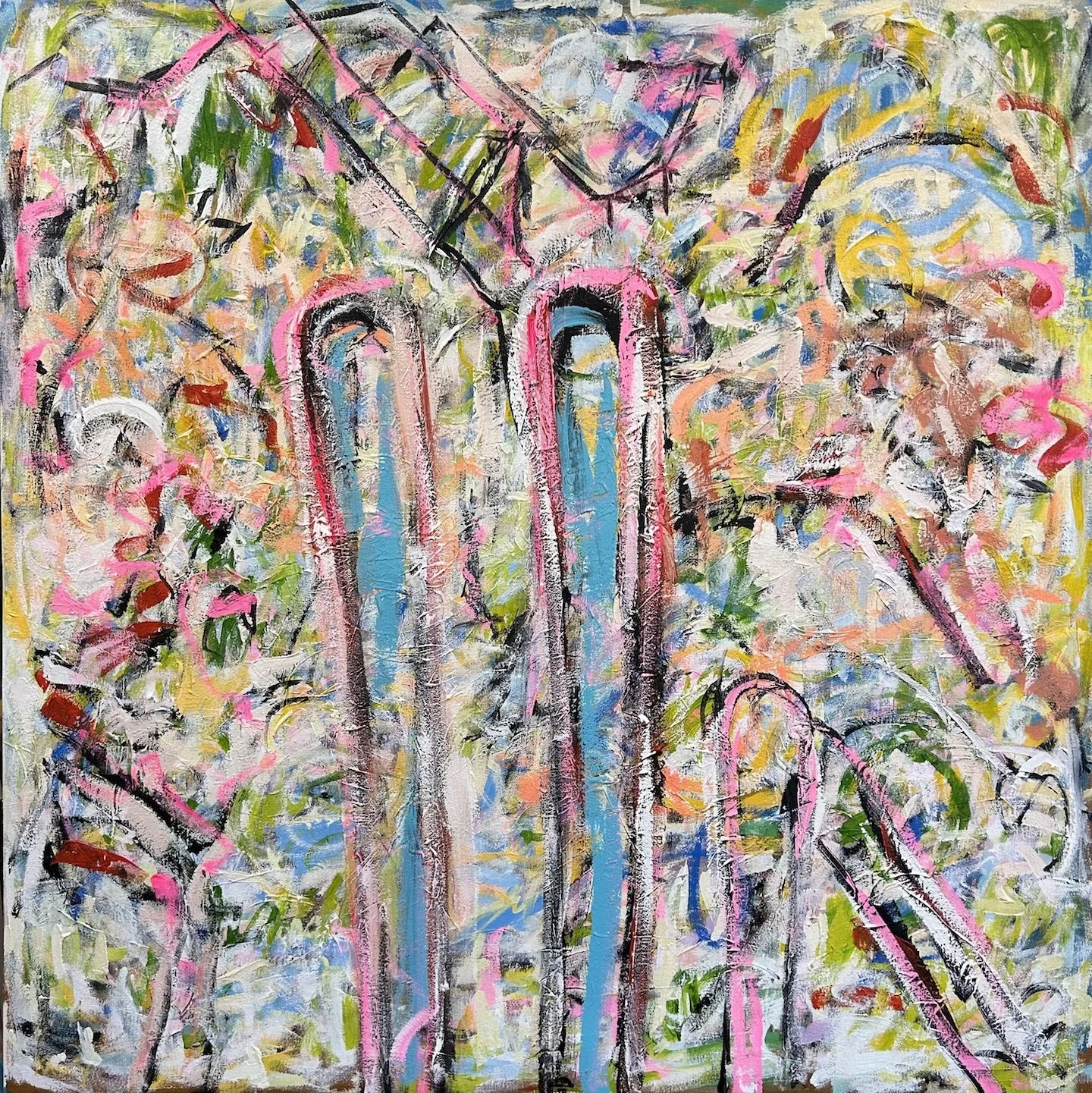 I painted my first winter painting, For Sale: Child Skis, Never Snows, with the title an homage to the shortest story ever written. That was around February 2024, approaching a full winter without snow that could stay. You could see culture melting.
